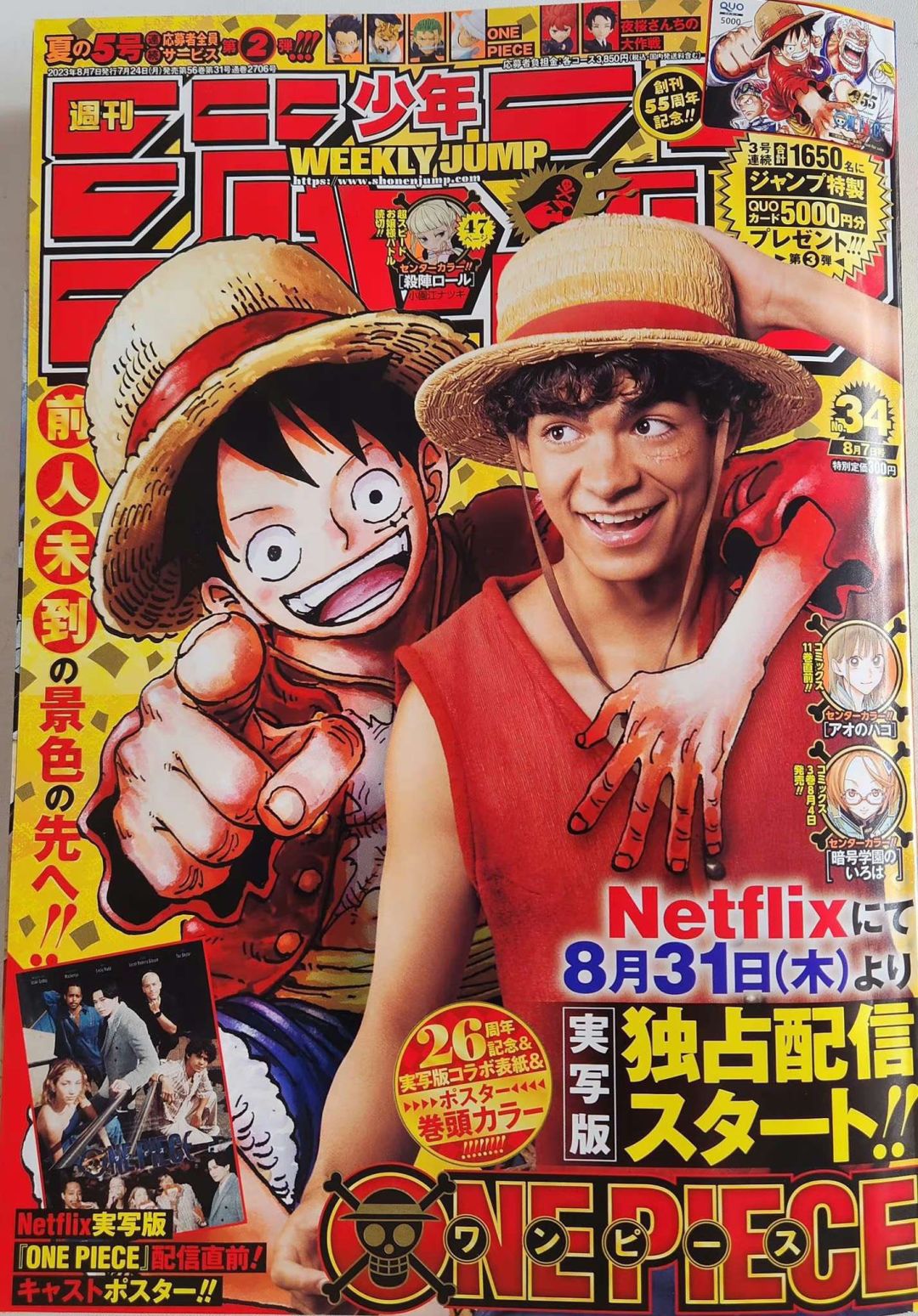 近日在新一期《少年JUMP》周刊封面上,《海贼王》路飞的漫画形象与真人剧演员同框现身。从图中可以看到动漫形象搂着真人路飞,非常欢乐。