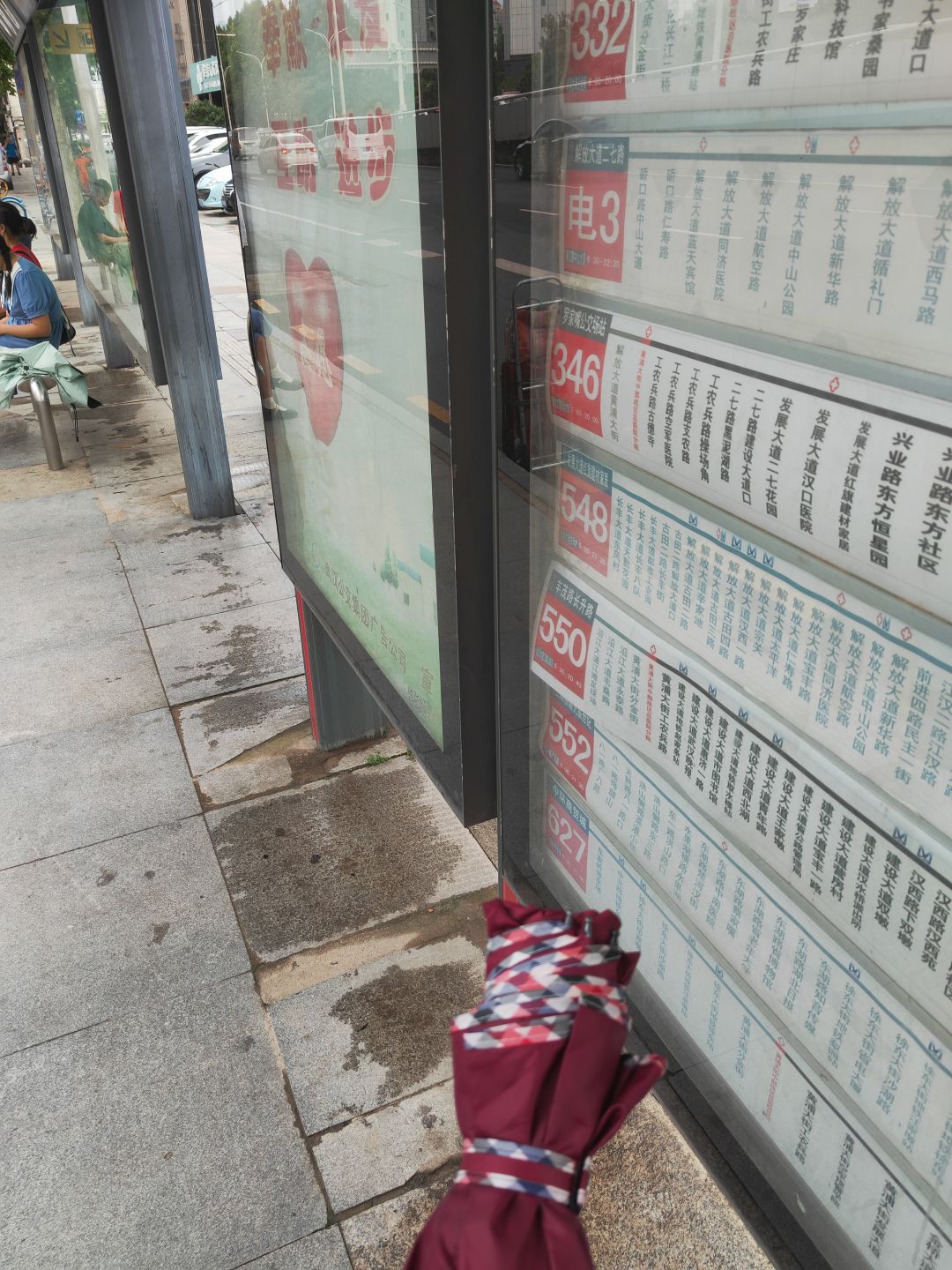 第四站雨娘公交站(黄埔大街中部战区总医院分院),出江边我就从黄埔大街分金街坐552到雨娘公交站(但已经没有雨夜狂飙552了),还有就是在孱陵路(公安路)买了一把红伞(幻想时间到~)