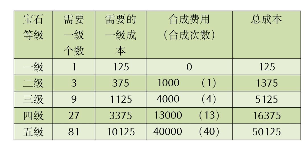 门票1000,按每次出8颗,1颗一级宝石的成本就是125元宝