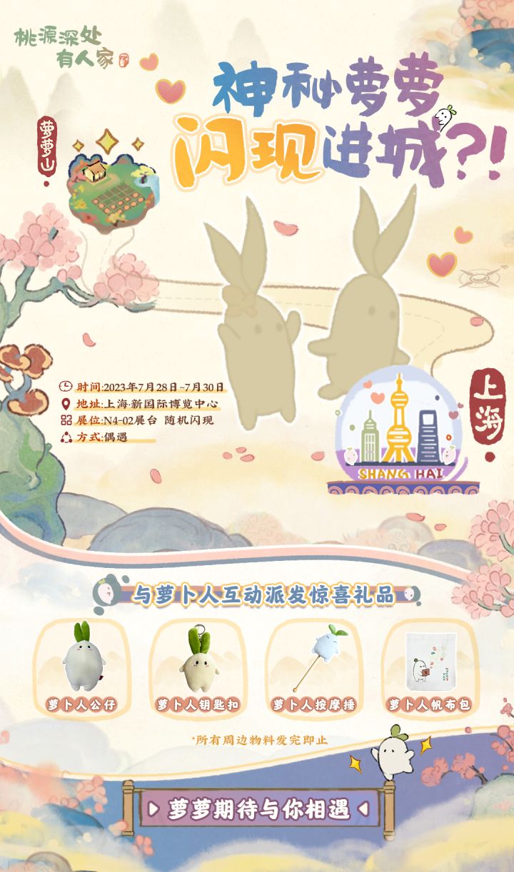上海ChinaJoy即将开启,有两只小萝卜受邀从萝萝山启程赶赴CJ现场!在现场的小伙伴可以与小萝卜一起互动萝~