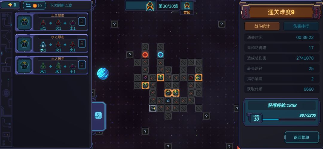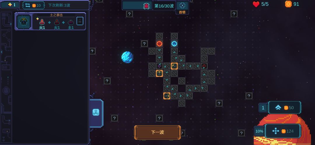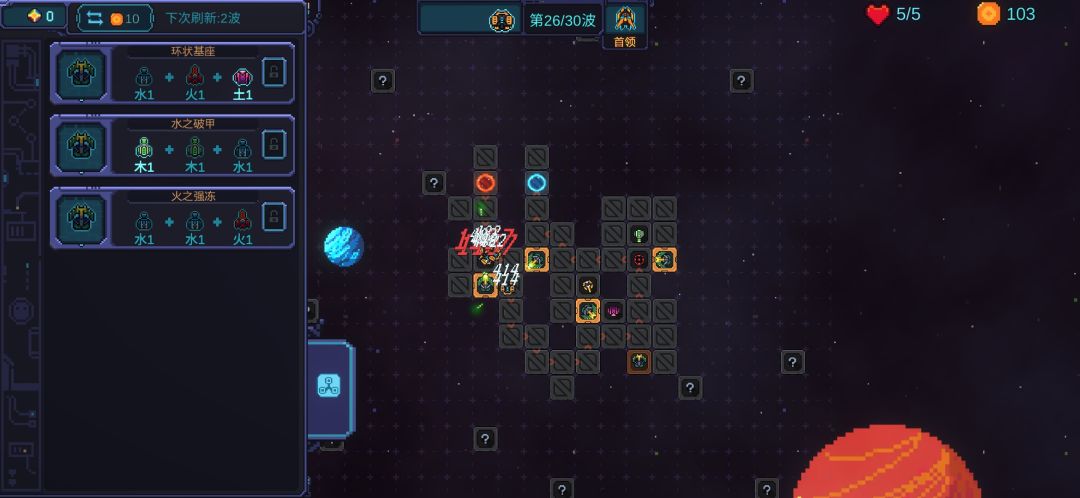 3、双极BOSS基本上就是验证输出的,有3-4个叠了多重的疾射塔,输出完全是足够的。我叠了四个疾射塔之后剩下的钱就只用来疾射塔升级和位置调整了。25波前,这个配置是完全足够的。25波后可以适当看看有没有冰冻的词条再补一个叠起来的重构塔,没有的话也不强求,就当补输出就好。