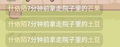 就面粉,玉米,西红柿没偷呗,时间长的都偷了(土豆好像不长,两块地都偷了),我的猪肉攒着等完成订单(粉蒸肉等等)呢,我谢谢她了,去看了一眼她的,只有2块小麦,真的服了,报复都没法报复尽