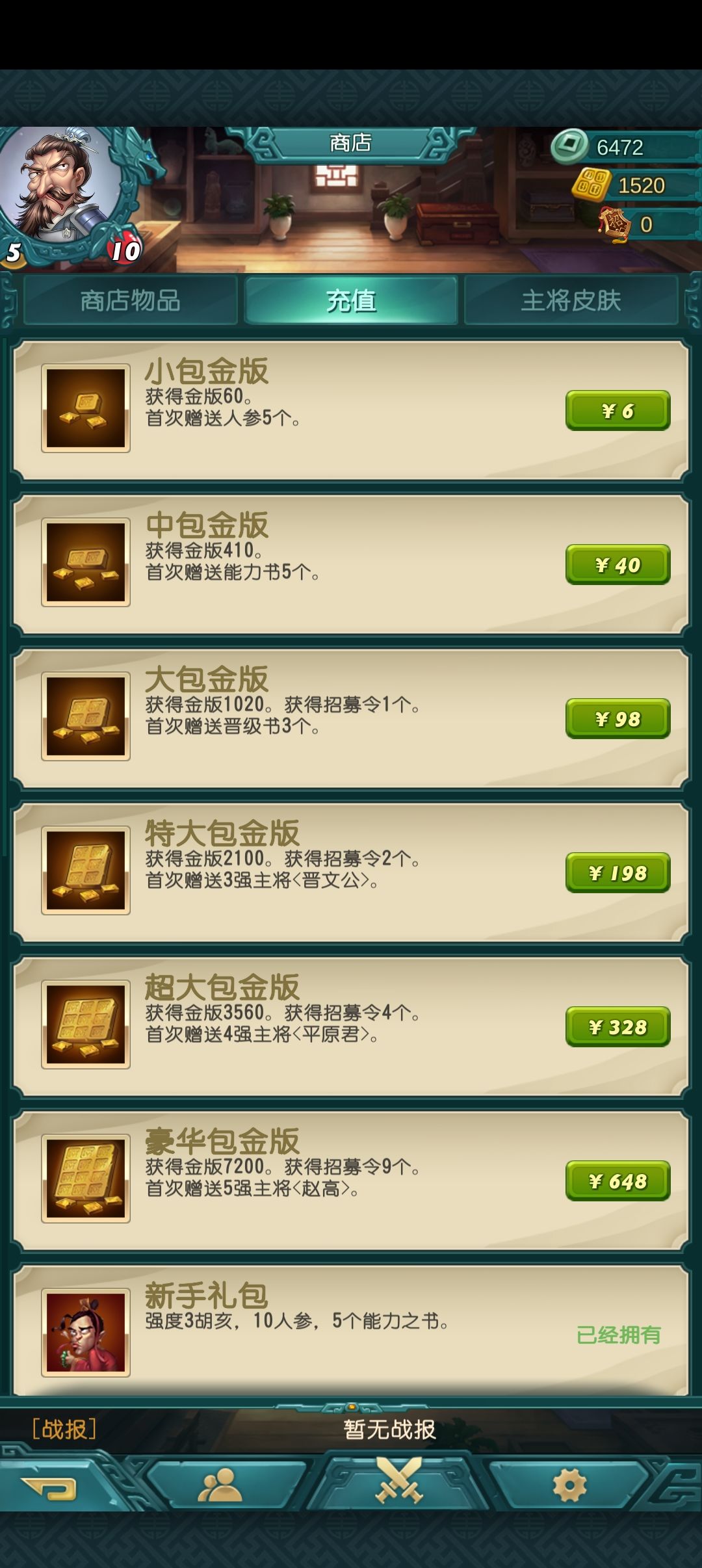 充值档位价格跟获取的金板数目,呈一个单个对象超出性的正比,这里超出的那个对象是“金板数量”。我想表达的就是,充的越多获利的会更多,就拿这个游戏举个例子:假设你要充98块,那么这个游戏98块那个档位就是获得1020金板,但是你分开充,40块那个档位充两次 ,然后6块档位充3次,加起来也是98块,但是这里获取到的是1000金板,同样98,这里少了20板,而且还少了个招募令。说到这都懂了吧,就是建议微,中氪“憋个大屁再放”。还有提醒一下巨氪佬,不要去充别的档位,盯着最高档位氪就好,除非真的乐意(除了人傻钱多实在想不到别的形容词,评论区能帮我想想吗?)