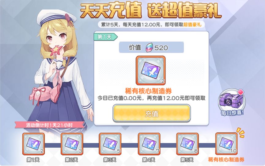 活动期间每日充值达指定金额即可获取相应道具奖励,连续充值满5天即可解锁最终大奖~