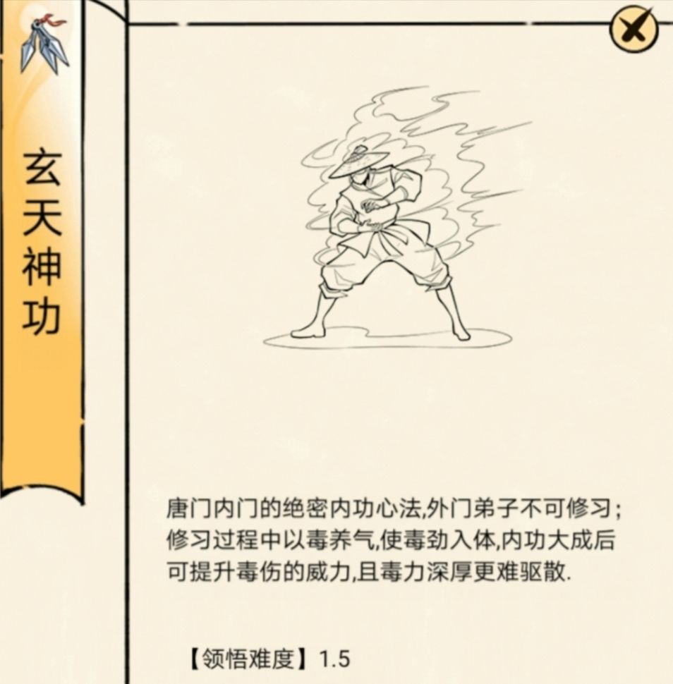 简介:唐门内门的绝密内功心法,,外门弟子不可修习;修习过程中以毒养气,使毒劲入体,内功大成后可提升毒伤的威力,且毒力深厚更难驱散。
