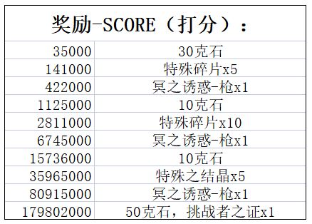 奖励:克石x50 冥之诱惑-枪x2 修复EXP+150