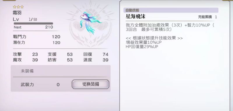 玛娜碧影:剑,物攻/魔攻:127/15,胜利时回复10%MP