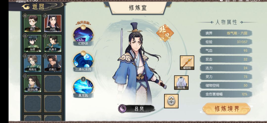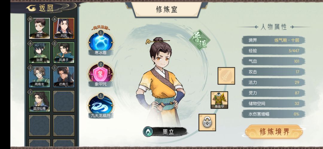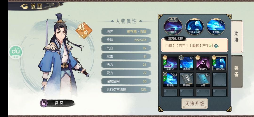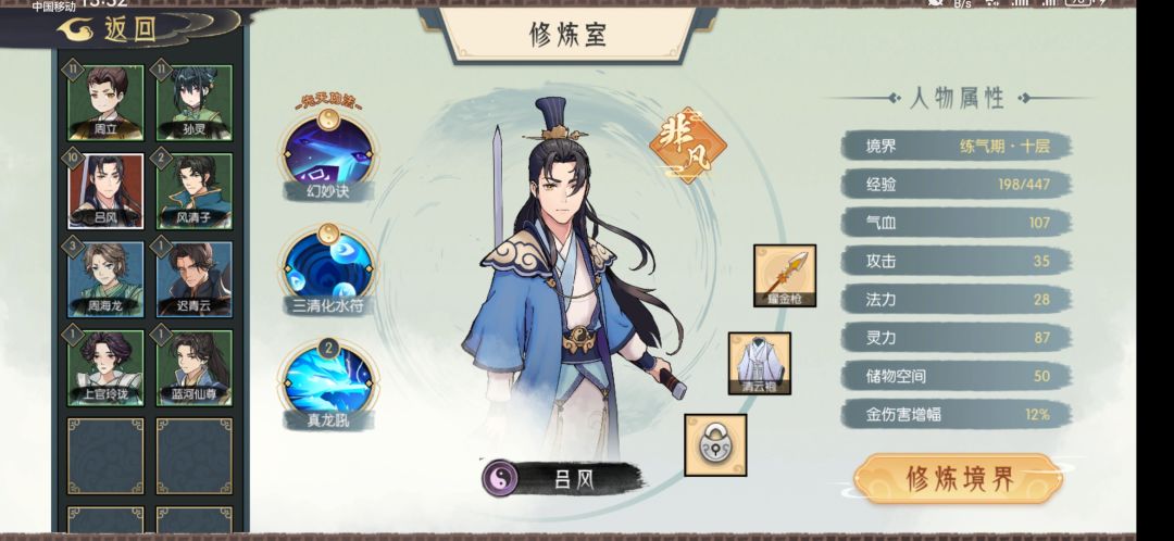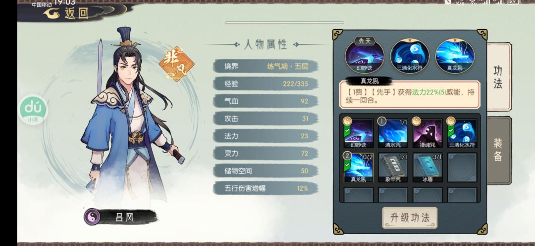 思路很简单,就是主角的幻妙诀,复制周立的九天龙威符,然后靠小师妹的冰锥术打伤害,极致的刮痧