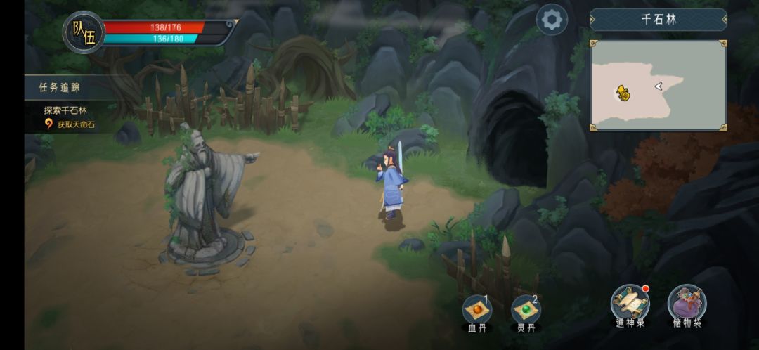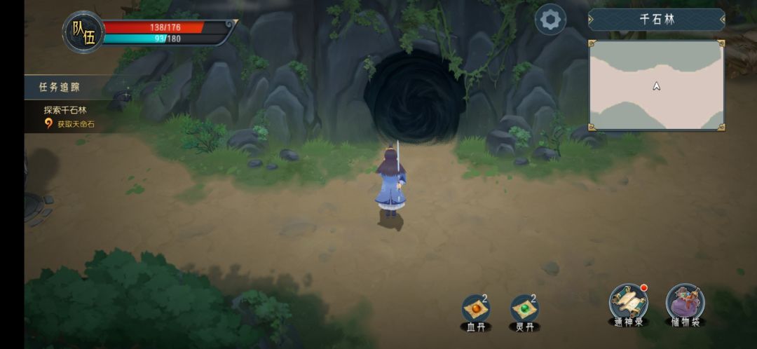 而且你从这个洞出去回一趟你的宗门,你再出来,你满血满蓝了,第一关,最后这几个怪物你打完,不想吃药,就是极致松鼠党什么都要省,那你从这出去回趟家再来,满血进战斗