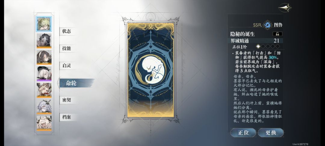 ③辅C-🐙章鱼图鲁。命轮不是他的专武(谁家好人打boss前不攒满怒哦💢),而是图5【隐秘的诞生】更好,回怒快得一批。注意:🐙的卡算力高,且触手伤害都是只持续一回合,除非算力盈余否则能不出就不出,只出【打击】和【防御】叠触手伤害(一命被动)。