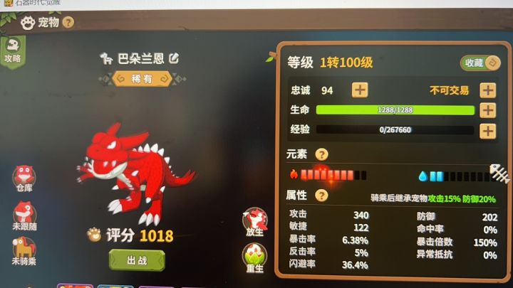 任务:这类宠物有很多石器经典宠物,比如红暴巴朵兰恩,蓝暴左迪洛斯,金虎金格萨贝鲁等,当然五转生宠帖拉所伊朵也算这一类。这类宠物无法交易,获取时品质随机,但作为经典宠,本作最大坑就是这里。这类宠物可以通过重生蛋反复洗,一次5块或10块,50次保底出稀有。内测大部分氪佬的rmb都在这里被耗了,大家量力而行吧。
