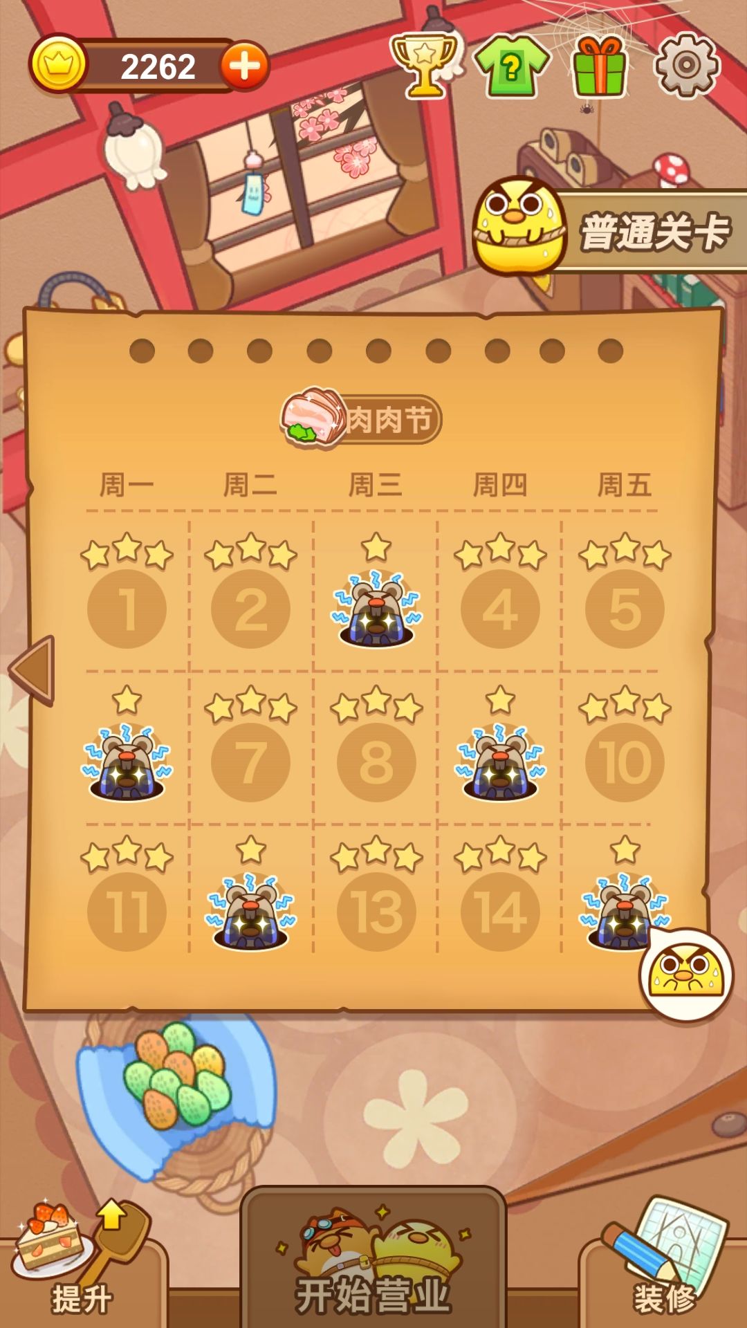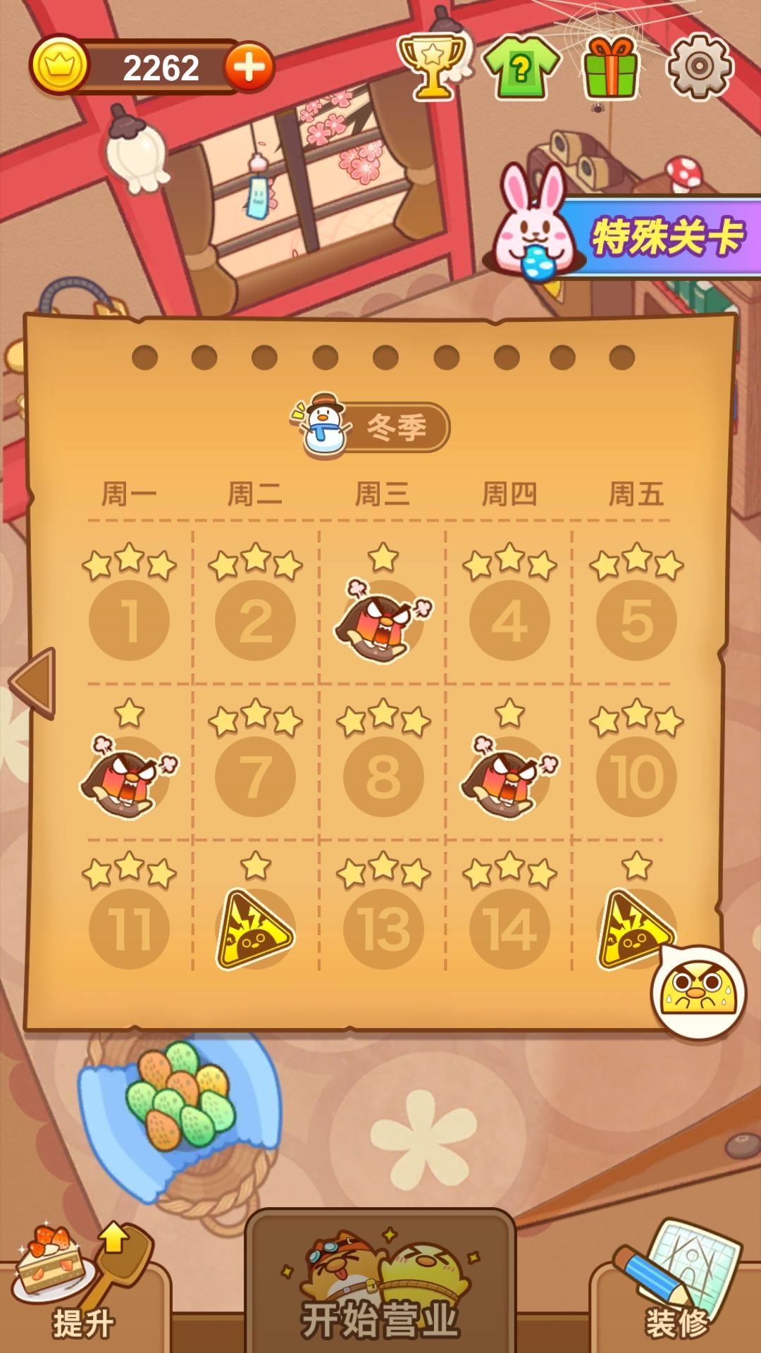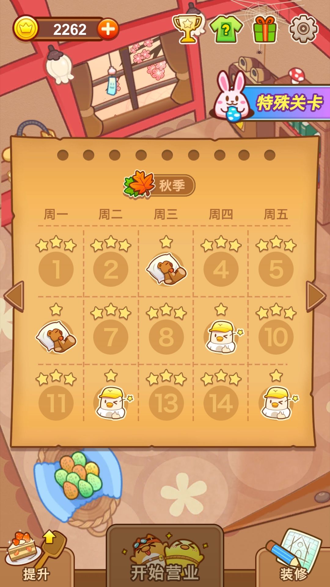 夏季图的难度上升了一个档次,增加了布丁睡觉和打地鼠的设定,算是入门级难度