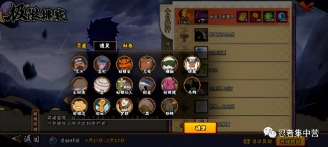 本文首发【忍者集中营】公众号,未经授权禁止转发至其它平台。嗨喽,各位小伙伴们大家好。火影忍者是一款非常受欢迎的格斗手游。极限挑战这一个活动大家都知道吧!也是最近每一天都会更新的一个活动,每天都有不同的忍者可以试玩,而且奖励也是可以重复的获得,只要你分打的够高,本期小编就为大家带来一期高分攻略。极限挑战第五天活动玩法一.忍者+密卷+通灵首先忍者的话我们就选择勘九郎,技能比较适合这种靠时间来拿分的活动,通灵我们就选择蛤蟆龙,用于将怪集聚到一起,好一次性收掉,密卷就拿“时空间”也是作用于聚怪用的。