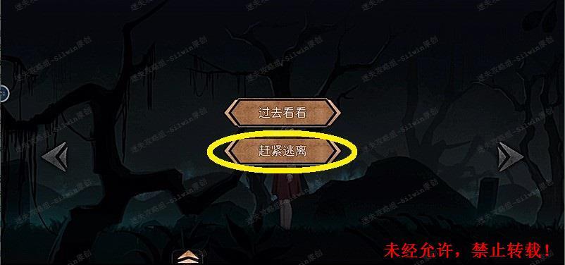 2.向右走,直至触发剧情(身后出现怪物),出现选项。如选择“赶紧逃离”,可直接向右离开该场景。(推荐)2
