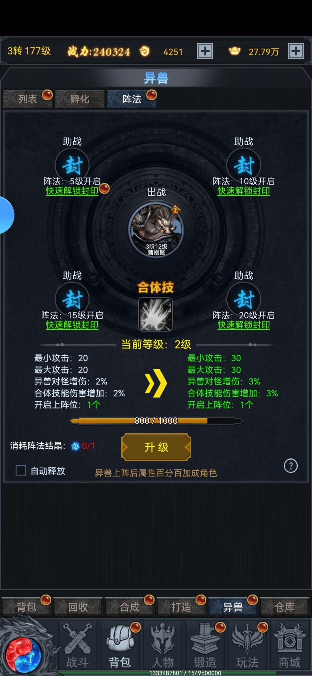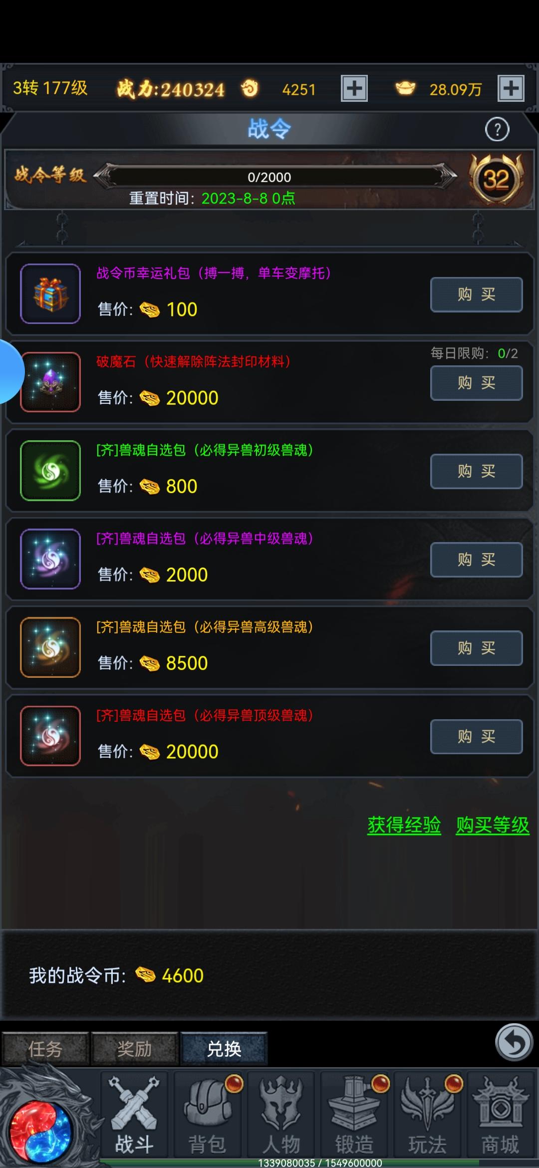 开局三天送的破魔石存着,先让自己阵法升五级自己开一个,不然十级或者15级等到天荒地老都出不来,战令两万一个破魔石属实有点贵,对平民玩家不友好。