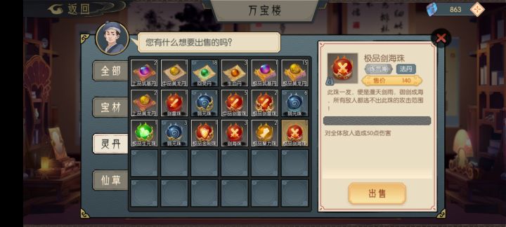 万宝楼东西很贵,买基本上都亏。坊市东西稍微便宜点,卖也会便宜,所以尽量去坊市买,万宝楼卖。但是就算在坊市买便宜材料炼丹去万宝楼卖也是亏,亏的不是一点。