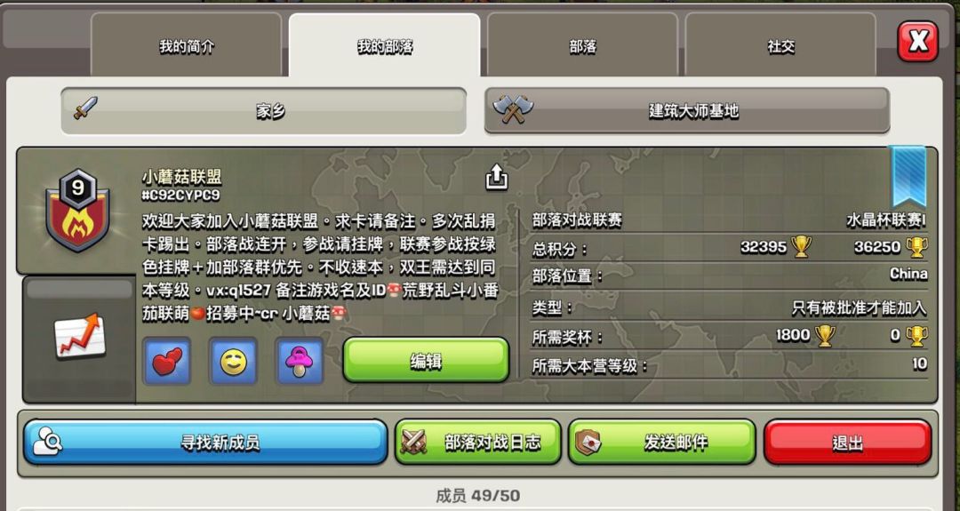 本战队属cr coc小蘑菇家族战队