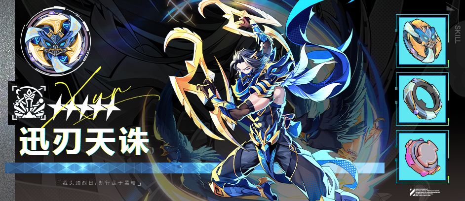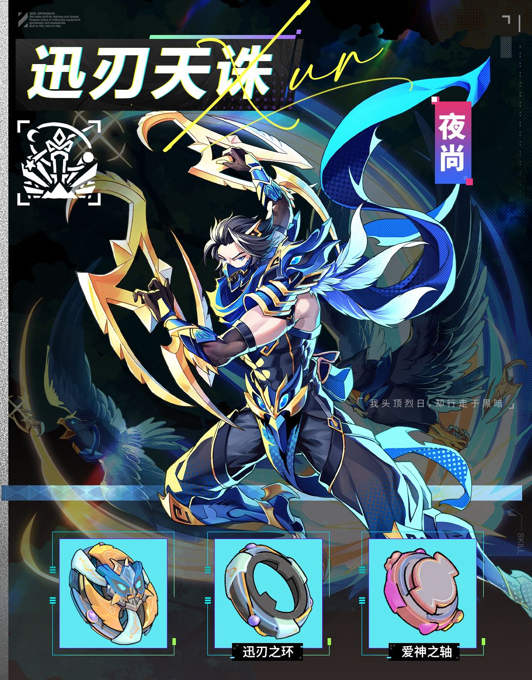 “迅刃天诛”的誓灵是来自流沙之国的刺客先生,代号“夜尚”,被认为是当世最好的刺客,只接恶人,不取分文。