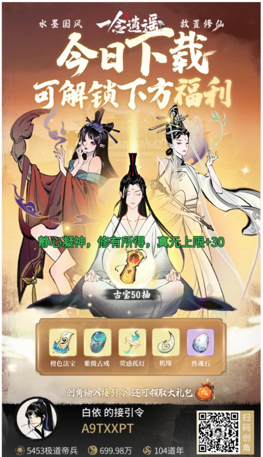 接引令A9TXXPT新人记得在一念逍遥微信公众号领全密令奖励