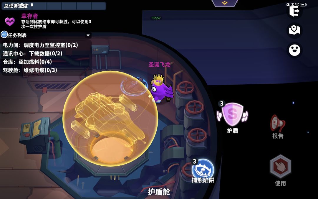 第2个是贝壳号飞船,我们带上这个捕兽夹,来到这个护盾舱,到达图片4的这个位置。在前方放上一个捕兽夹就可以苟分啦。