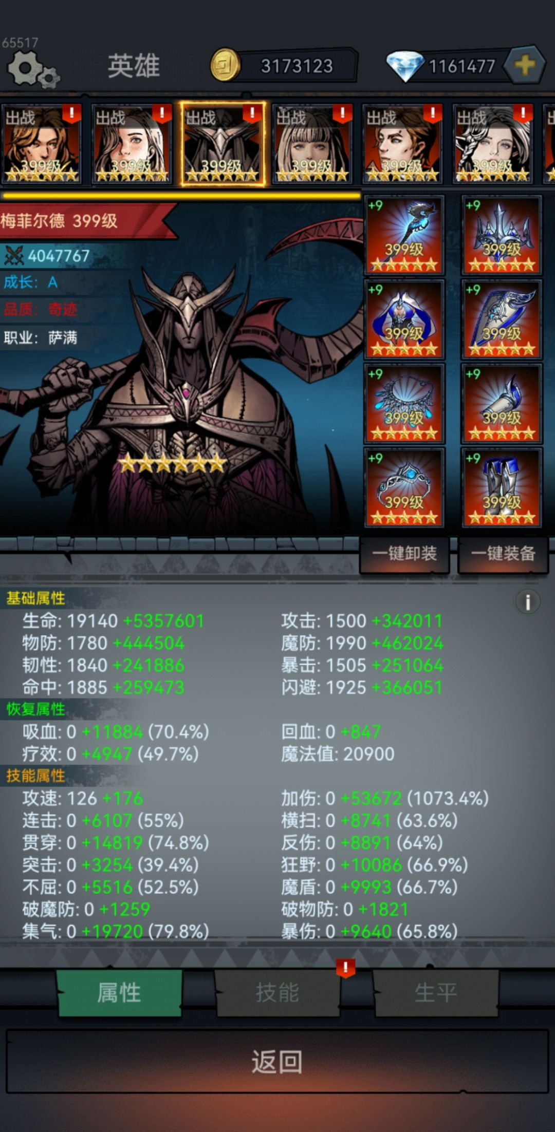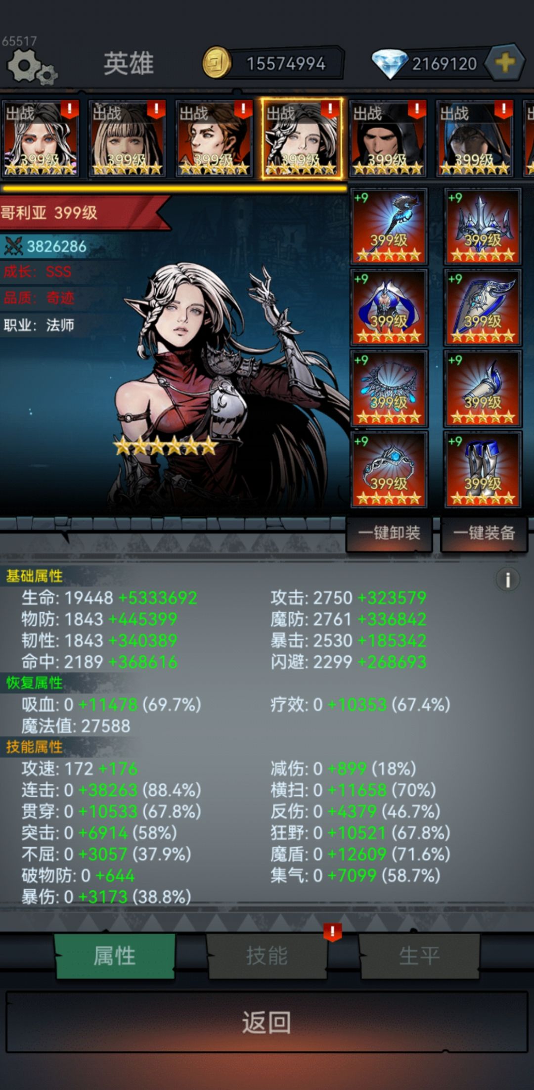 2:英雄角色不需要SSS奇迹品质,随便有个传说品质就够,不用刻意去抽红色英雄品质,抽到所需的职业即可,加成的战力属性差距不大(主要战力来源于宝石和装备)