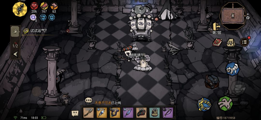本人有幸误打误撞,在深渊抽奖机得到过一个金色图纸,所以想搞清楚,概率,和获得方式。抽奖机7层有一个,11层有一个(我不确定,7-9我刷了10几次,10-12没多少次)。本人在7层抽了100多次(大概)很安全,币越抽越多(送了我本科好多次20币)。没抽到图纸,所以转战11楼,抽了两三次,我妈让我睡觉。点关注后续会持久更新。