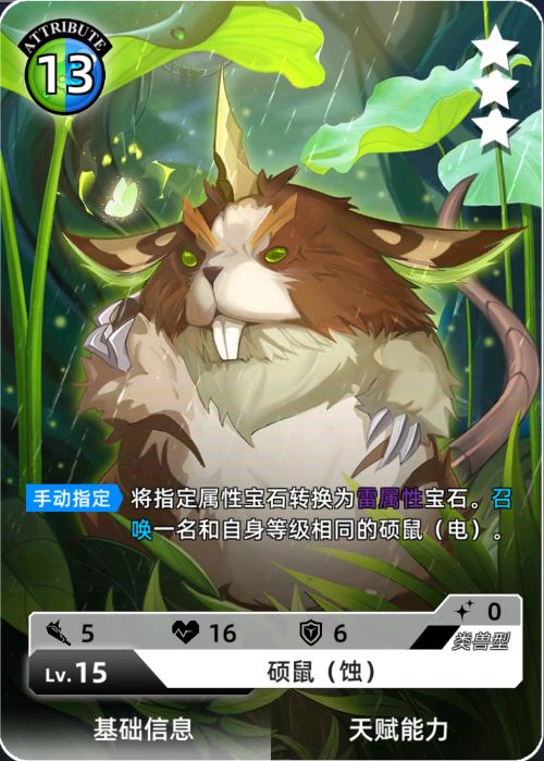 鼠鼠!魂器本的神!选鼠鼠就对了。前两选如果都没选到强卡,三、四选还有鼠鼠可以选。硕鼠(蚀)和硕鼠(电),两张鼠鼠可以互相配合、互相召唤,启动了就生生不息。就只怕对面一个AOE全秒了(说的就是对面的嫉妒)。下面是我选到的配队,建议开局空出一个位置给鼠鼠召唤小伙伴。
