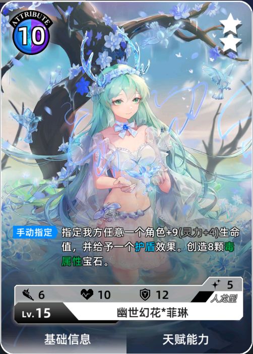 魂器本里的最强充能卡,运气好能炸全屏,四消造潮汐,还带召唤。因为她的充能效率不吃灵力值,在魂器本里比别的充能卡强几个档次。不过第一轮选她的话后面就要选好输出卡了。下面是我选到的配队,可以参考