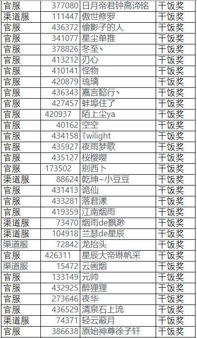 幸运奖:所有回答正确的玩家里抽取幸运奖(5名):无双T恤(与干饭奖重叠)
