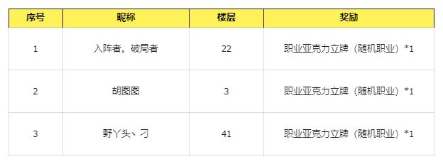 回复层数达到50层时,送出职业亚克力立牌(随机职业)*3