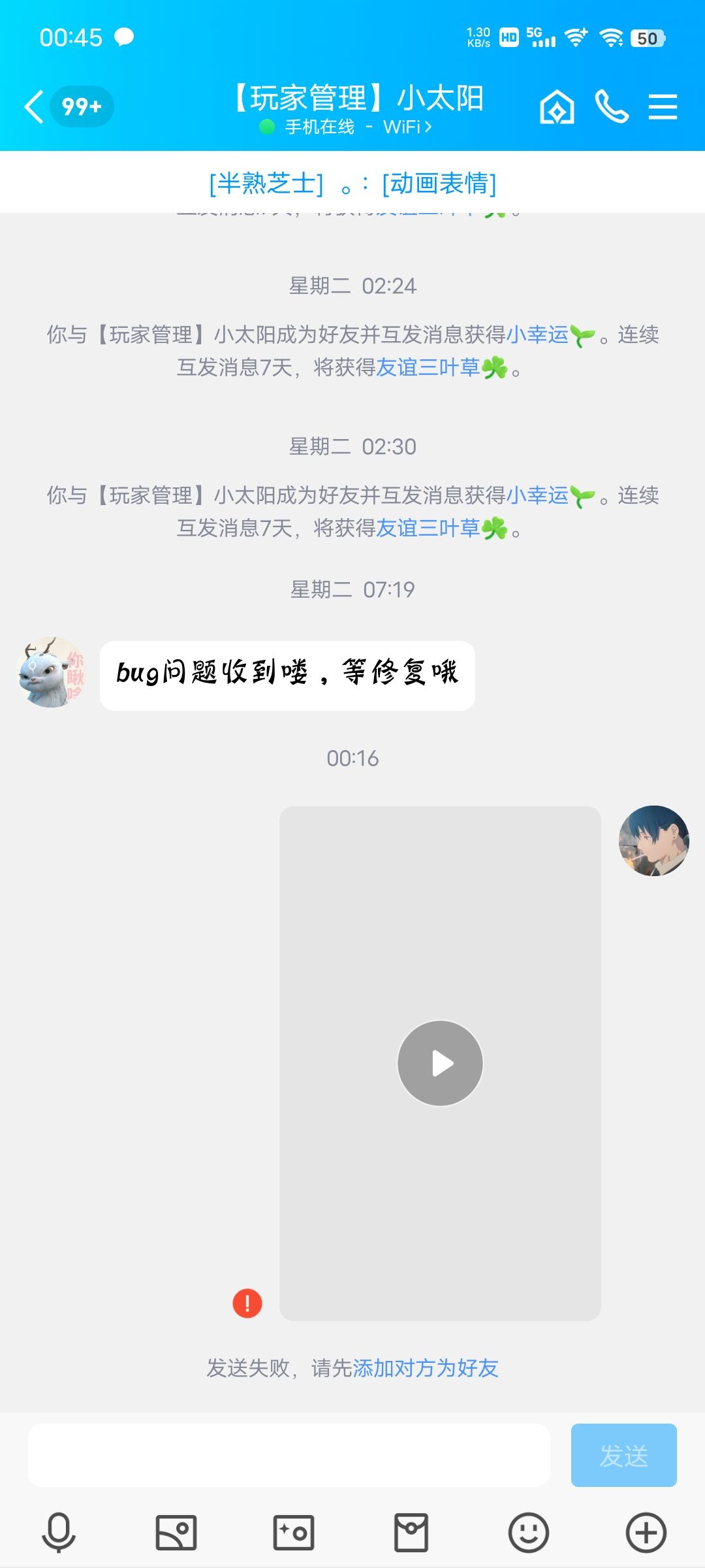 反馈了那么多bug,结果管理员把好友删了,这么白眼狼的。。