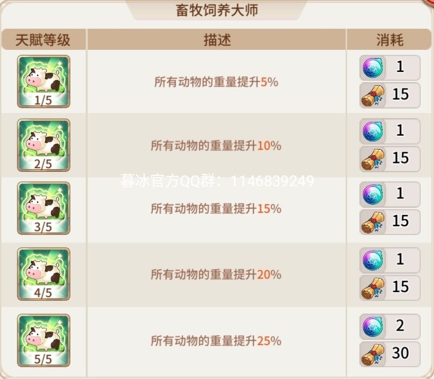 ④畜牧养殖大师:5级,所有动物重量增加25%
