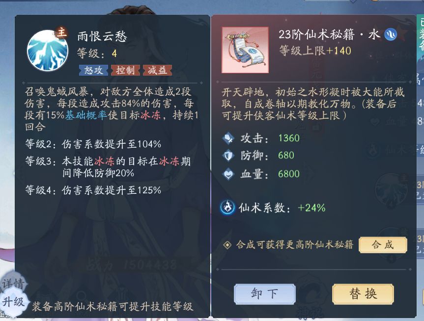 水元戈每冰冻一个目标回怒150,效果命中加15,在冰几次之后,就会做到百分之百冰冻而且每回合回复怒气150乘以6,再加上水灵的上毒回怒,这个时候就可以无限怒了,保证了我们的队伍不会受到伤害。