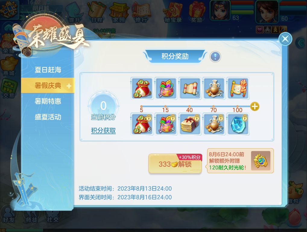 7月27日维护后-8月16日24:00,完成任务可获取积分领取奖励。