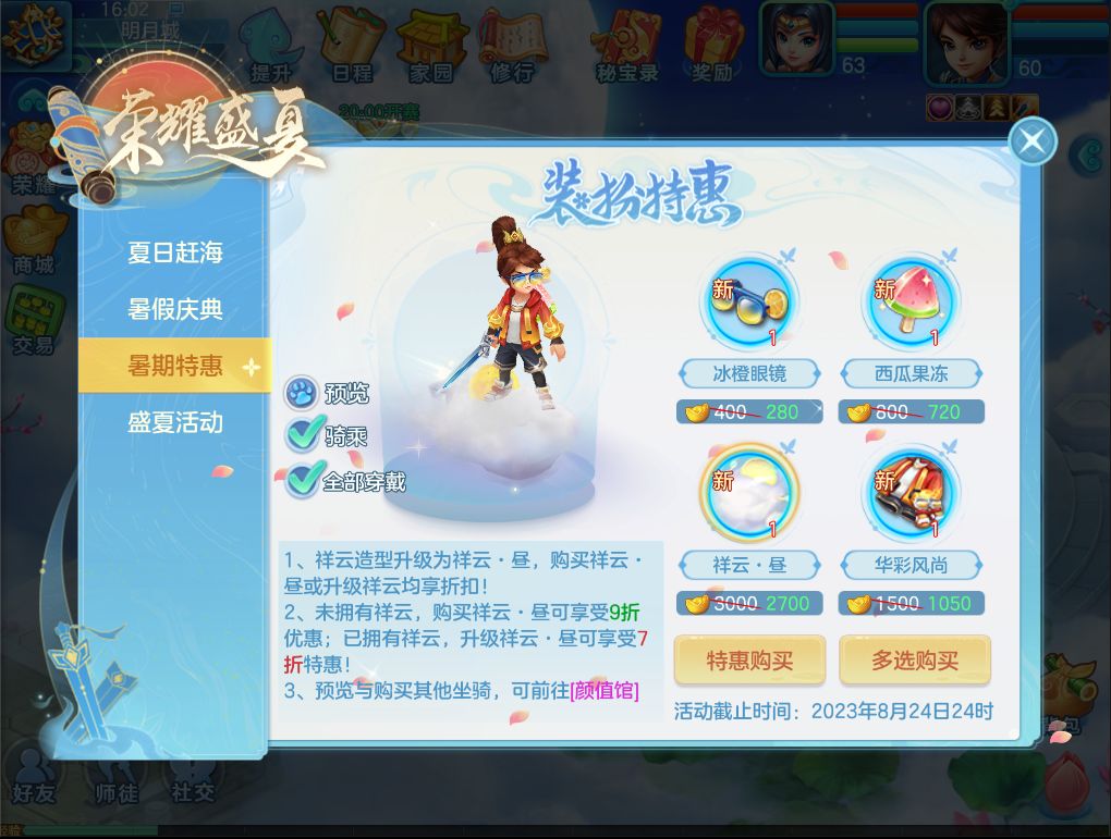 2)坐骑祥云造型升级!活动期间购买新祥云或升级旧祥云享受相应折扣。