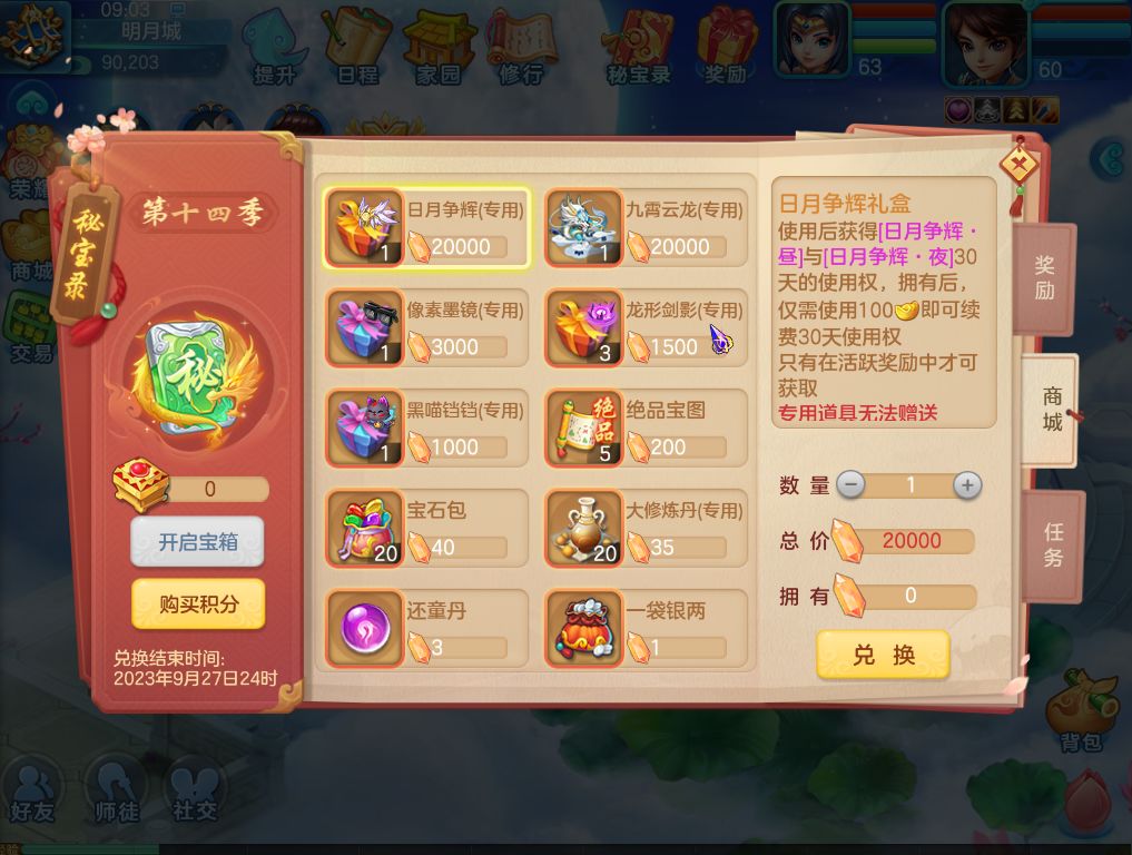 1)7月27日维护后开启第14季秘宝录;