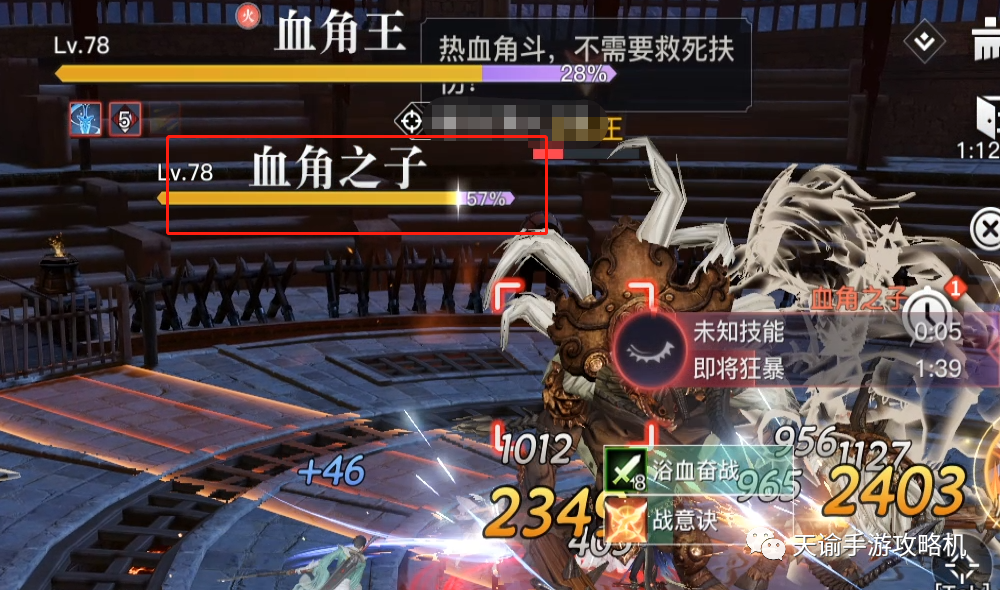 40%血,BOSS跳到场地中央,原地大吼,血角之子会在BOSS释放完这个声波特效后,从侧边跳进BOSS身下,其具备和血角王完全一样的技能,也就是说他也会血祭,稍有不慎一灭灭两个人。