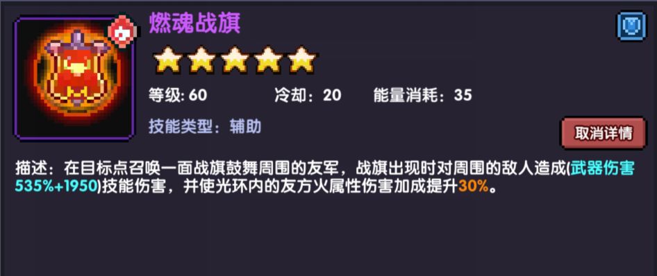技能合计增益:20易伤 30火属性伤害加成 5%暴击率 30暴伤值 30攻速 30移速