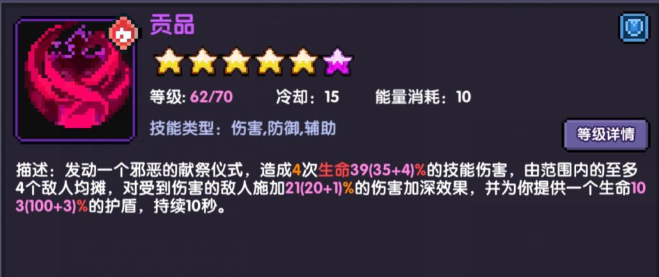 技能合计增益:20易伤 25木属性易伤 5%暴击率 30暴伤值 30攻速 30移速