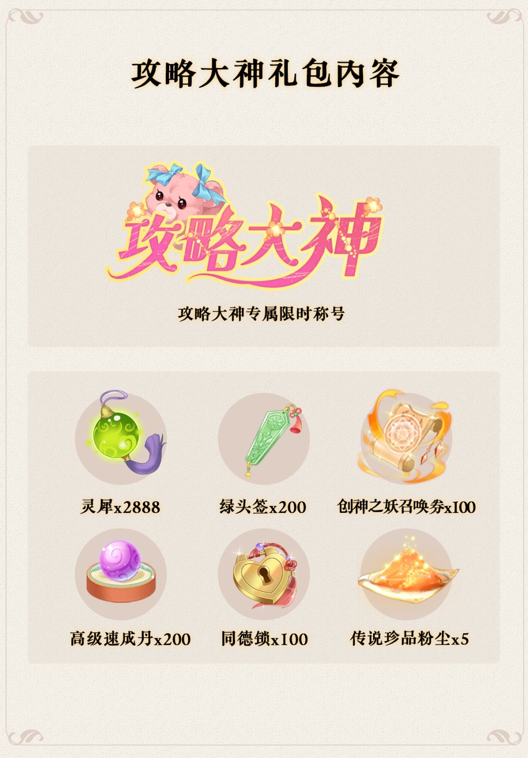 3、攻略稿件将经过运营人员的严格筛选,优秀作品将获得攻略大神礼包内容。同时我们也会参考攻略小分队(这个小队汇聚着曾经投稿过攻略的大神玩家哟!)成员的意见~期待更多攻略大神加入我们的小分队!