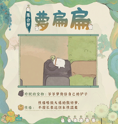 神秘莫测的萝萝古镇终于慢慢呈现在大家的面前了,这里不仅拥有着各种好吃的美食,还有许多性格各异的萝卜们!本次要登场的便是萝萝古镇中热爱生活,团结一心的小萝北们:萝七公、萝圆圆和萝扁扁!