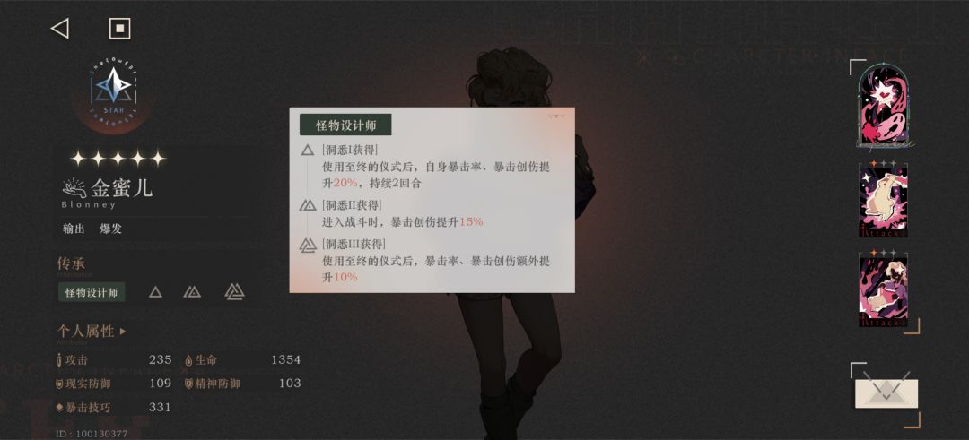 ①前言:金蜜儿是一名星灵感技巧主C,对于没有红弩箭的司辰来说,可以优先培养。