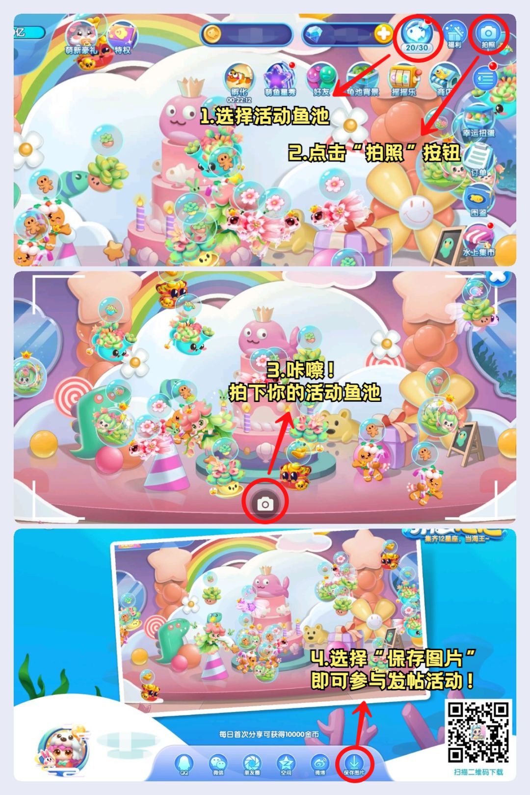 1.一定要分享活动鱼池哦,否则将不算参与成功;