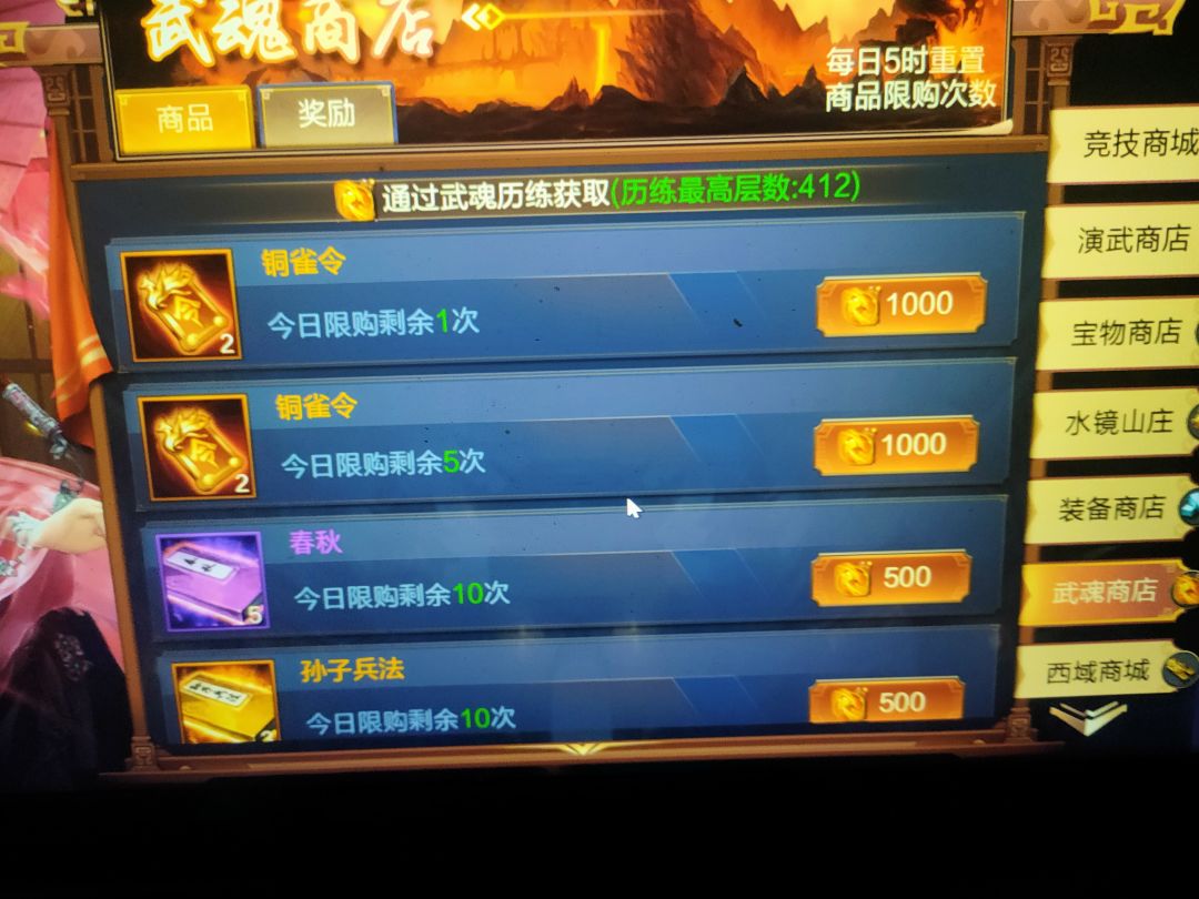 铜雀令的获取主要靠“战役”中的武魂历练活动来获取,另外通过特产收益和镭台比武也可得到。购买武魂战令,参加蜀传也有机会掉铜雀令。