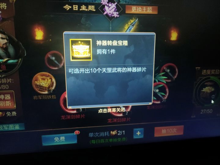 金将神器碎片可以通过神器殿抽取,50次可以得到金将神器宝箱。补天石也可以化作金将神器碎片,巅峰对决也有机率得到碎片。