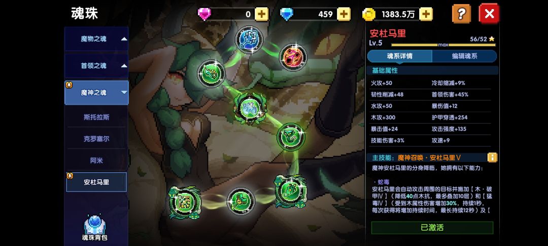 由于高追求忍者的CD压力太大,魂珠是很好补CD属性的一个系统,这里五安度依旧是首选,本职魂珠也是刚需,空出来两个位置其中一个当然是高贵的首伤魂珠,卡西的法师魂珠,(首伤/冷却)的属性简直就是新木忍的福音,最后一颗最优选为芙法/克罗的法师魂珠,有什么带什么