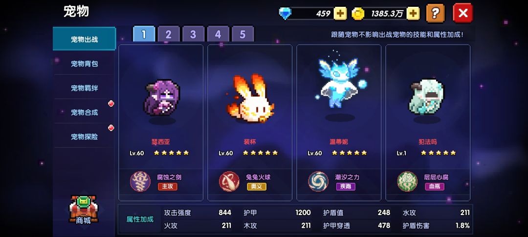 血瓶:这里选择瑟西亚的原因的库洛卡可以队友携带主c也能吃到属性,所以选择可以有400木攻收益的瑟西亚作为最优选的血瓶宠物,当然如果队友经济有限没有星级较高的库洛卡,依旧带回曾经的辅助3瑟主c霜魂/邪神