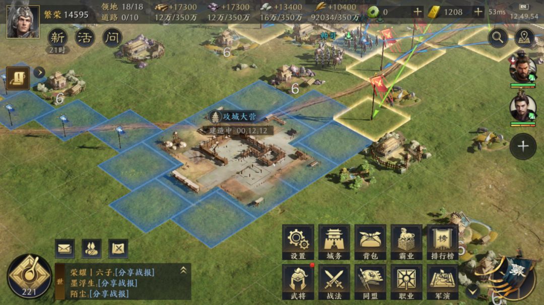 总体上来说,《三国:NSLG》前期的开荒节奏是比较平缓的,合理的搭配武将和技能、跟随主线升级建筑、按部就班的攻打资源地、参与同盟前期攻城,即可确保开荒进度不落人后。如果运用一些小技巧在每次打地之前先检查技能、点数是否应加未加、二队一起打一块资源地/一队连续打两次高级资源地以降低难度等,则可以在开荒阶段快人一步,取得一定的领先地位。