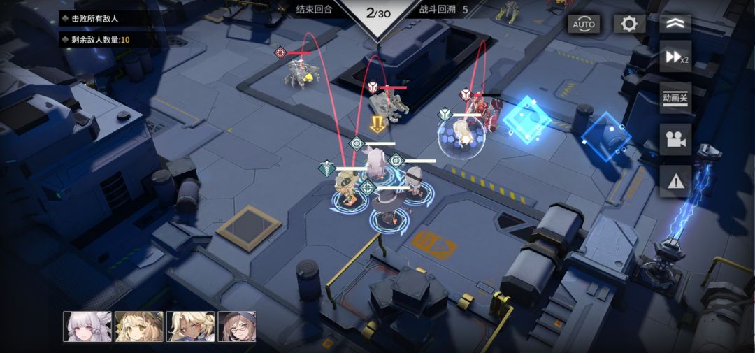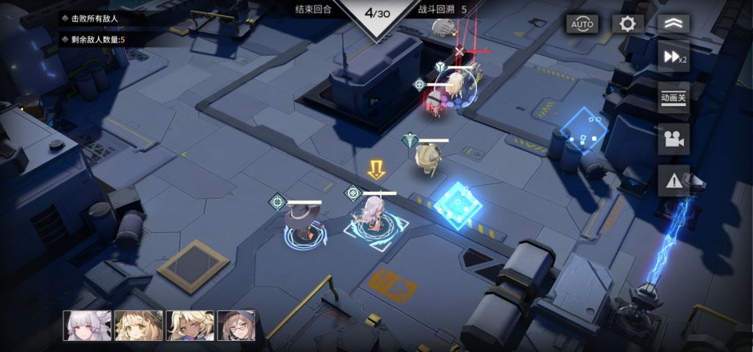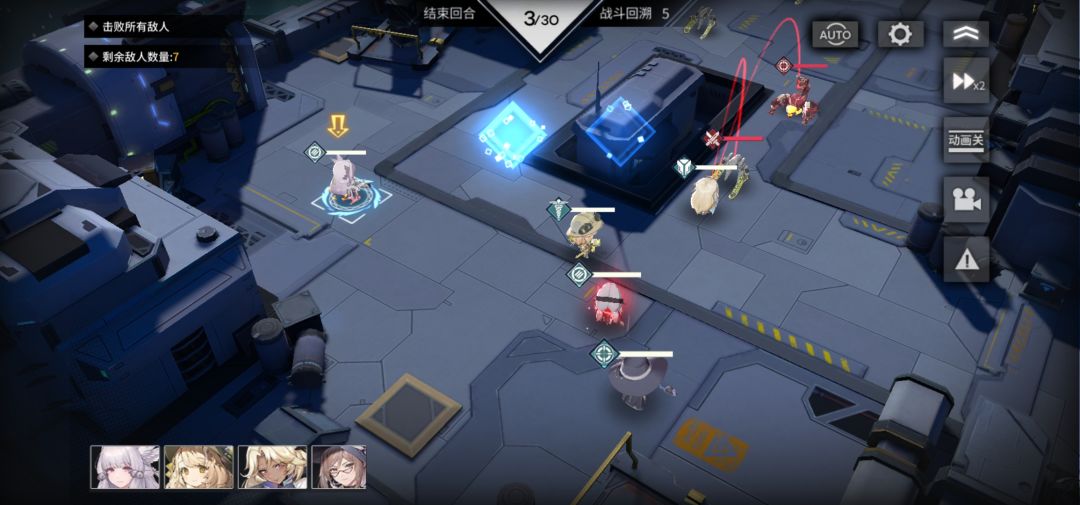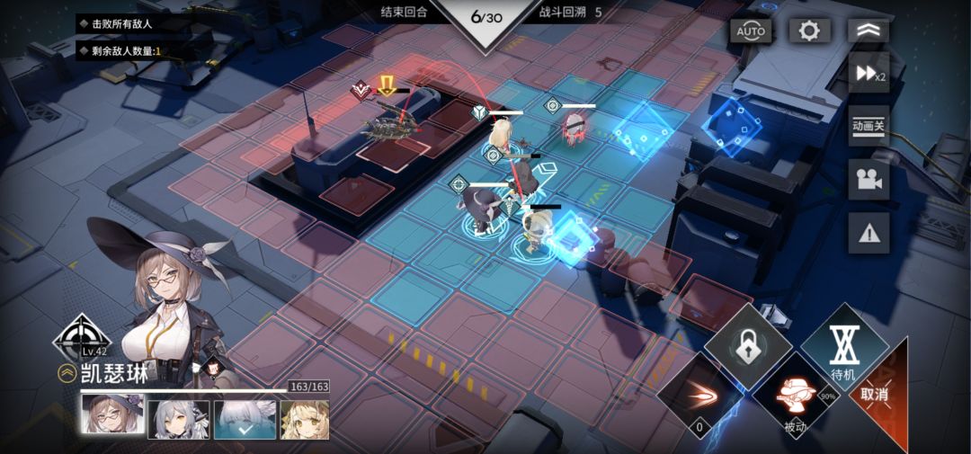 1. 注意站位,盾 狙 血叶兰 靠右,免得拦不住,开局用狙打掉右侧小白虫,练度不够用暴击凹,小白虫活着会有大变数