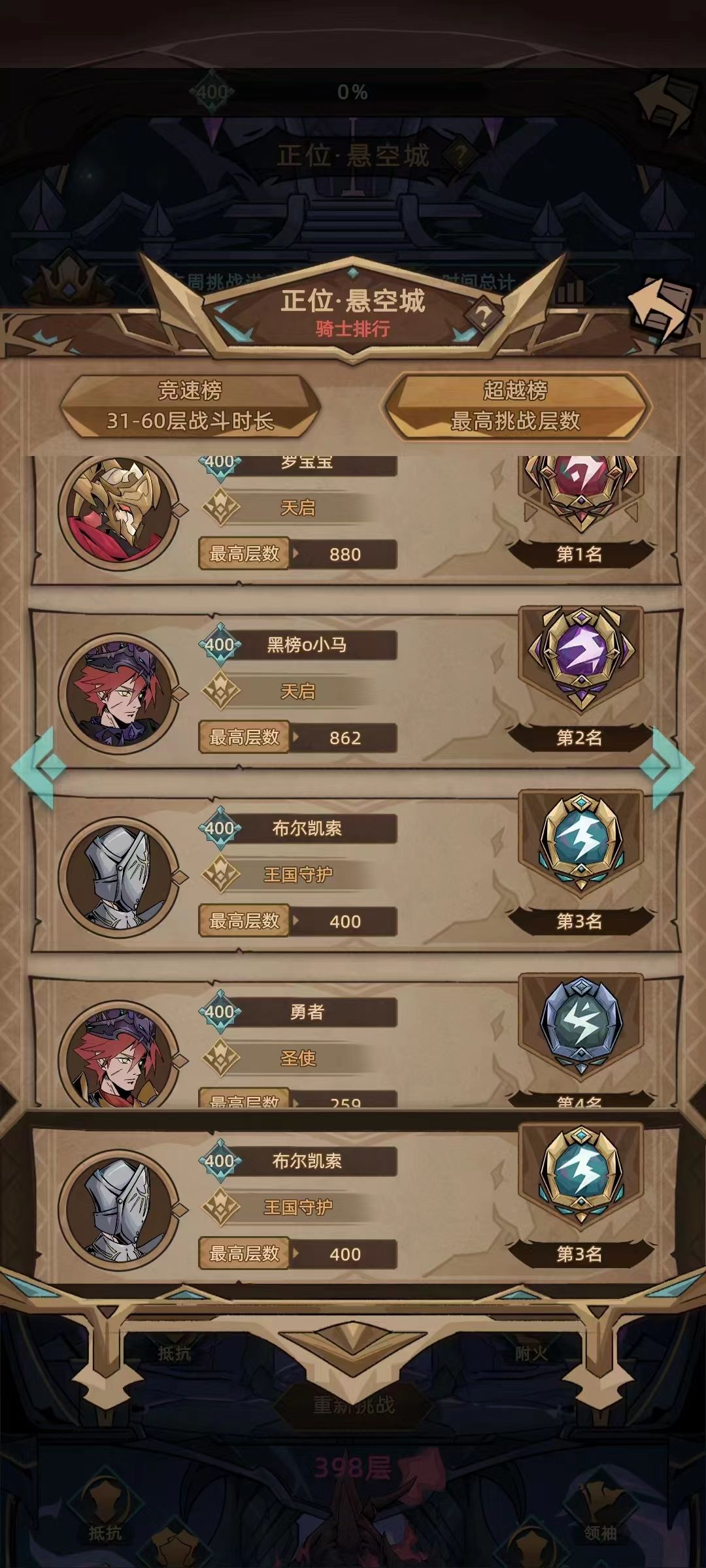 爬塔战绩突破400层